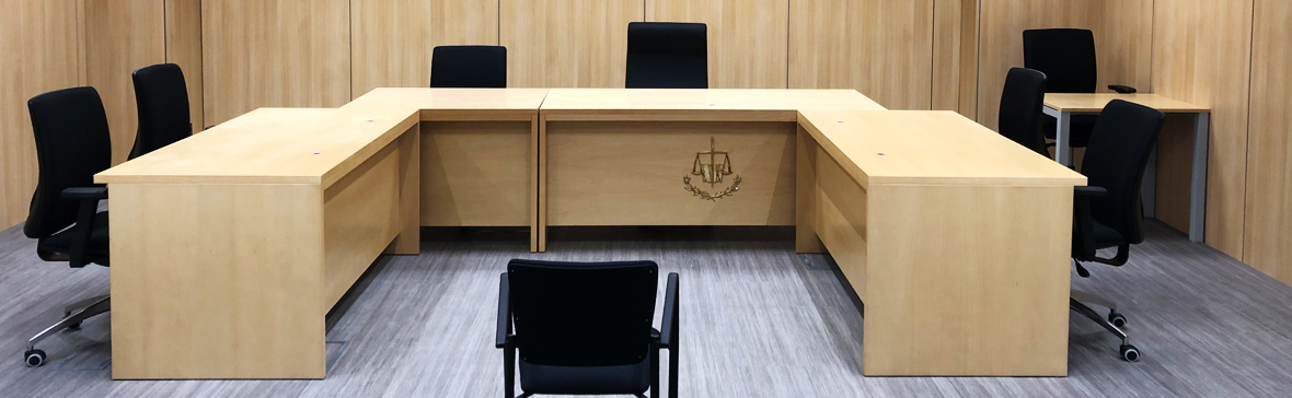 General DescripciónGalería Fabricadas en madera o bilaminado con tapas de 30 mm canteadas con doble faldón en el frente y costados de 30 mm con faldón estructural. Maderas a definir (Arce, Haya, Roble etc.) Medidas a definir con el cliente según proyecto. Escudos en bronce en el faldón (Justicia o Nacional).